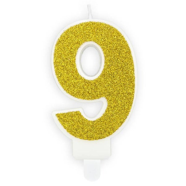Deze gouden verjaardagskaars 9 van PartyDeco is perfect voor je verjaardagstaart.