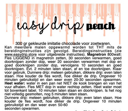 Easy Drip is een super makkelijk te smelten coating met chocoladesmaak en hardt goed uit op kamer temperatuur. Kan meerdere malen opgewarmd worden tot THT mits de bereidinginstructies zijn opgevolgd.